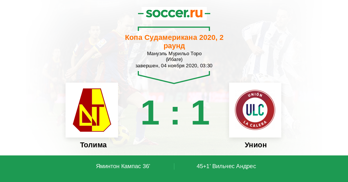 Протокол матча Толима против Унион