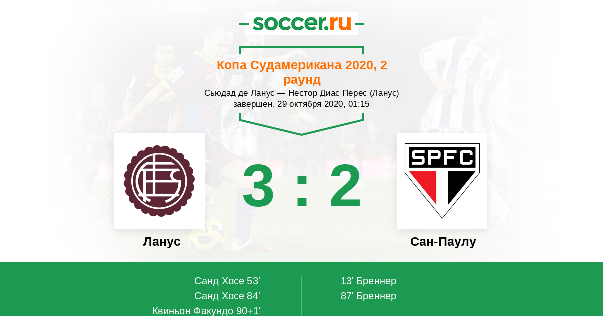 Протокол матча Ланус против Сан-Паулу