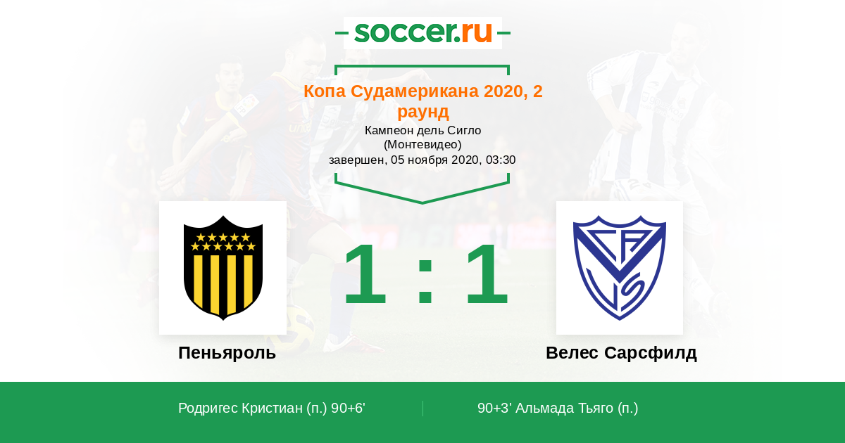 Протокол матча Пеньяроль против Велес Сарсфилд