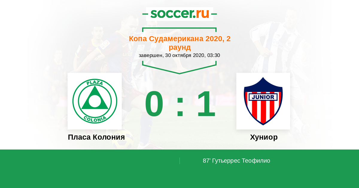 Протокол матча Пласа Колония против Хуниор