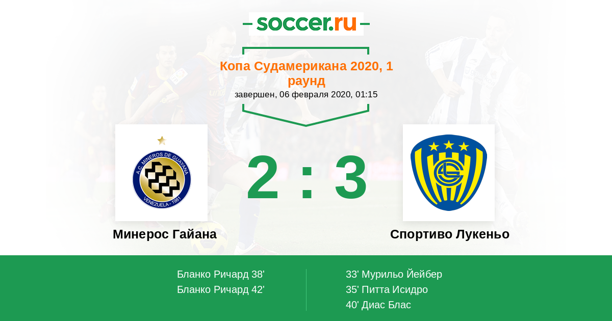 Протокол матча Минерос Гайана против Спортиво Лукеньо
