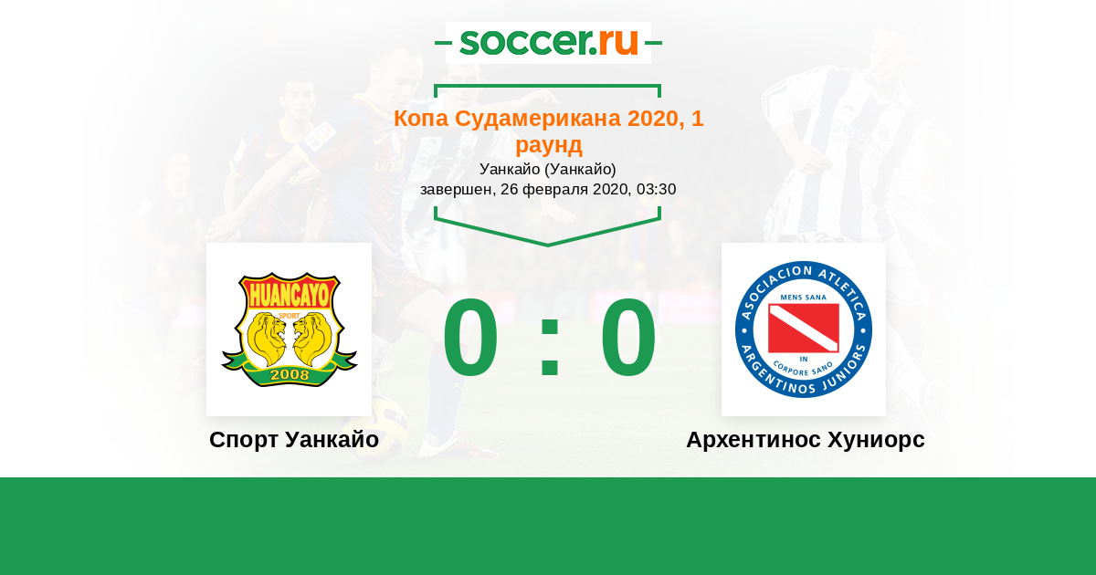 Протокол матча Спорт Уанкайо против Архентинос Хуниорс