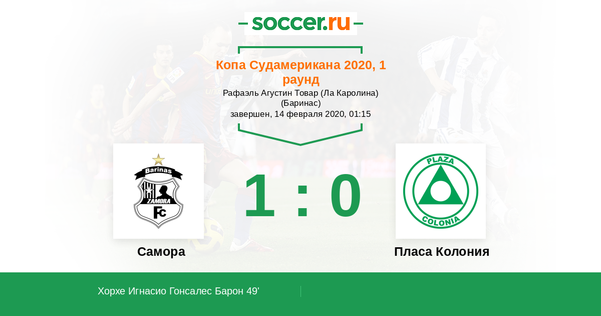 Протокол матча Замора против Пласа Колония