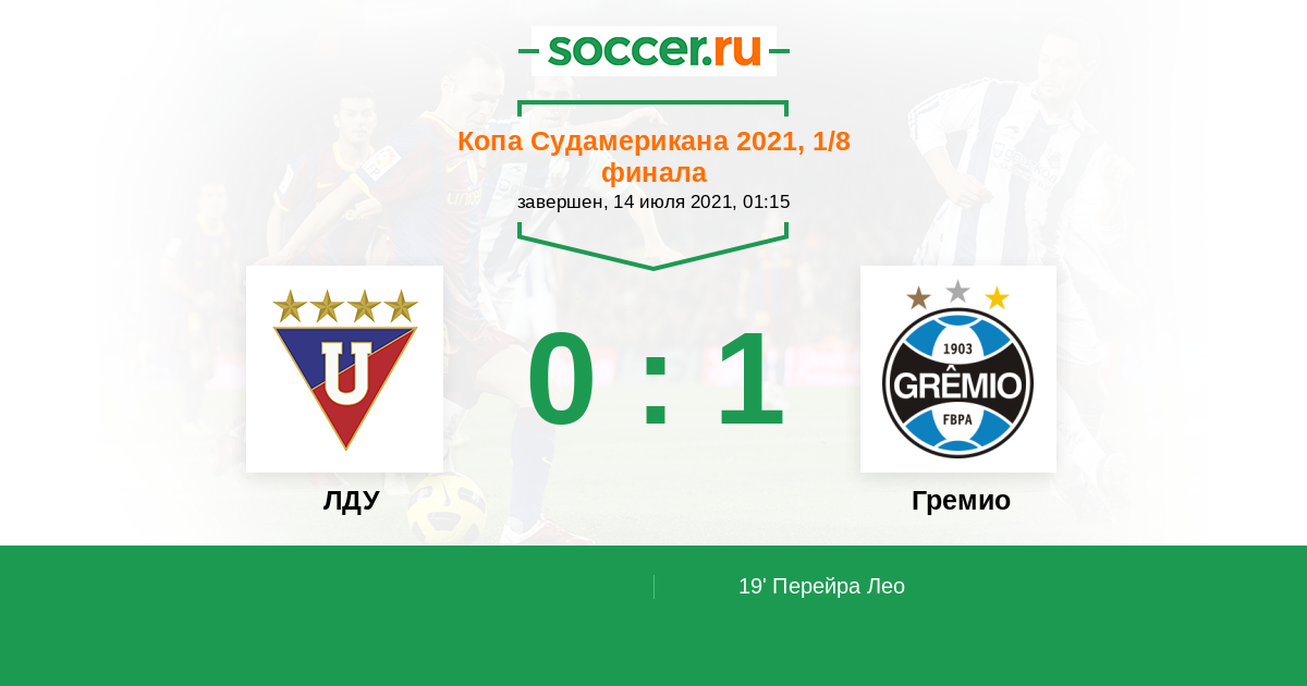 19' (0:1) Перейра Лео (38) (Касагранде Жан Пьер (10))