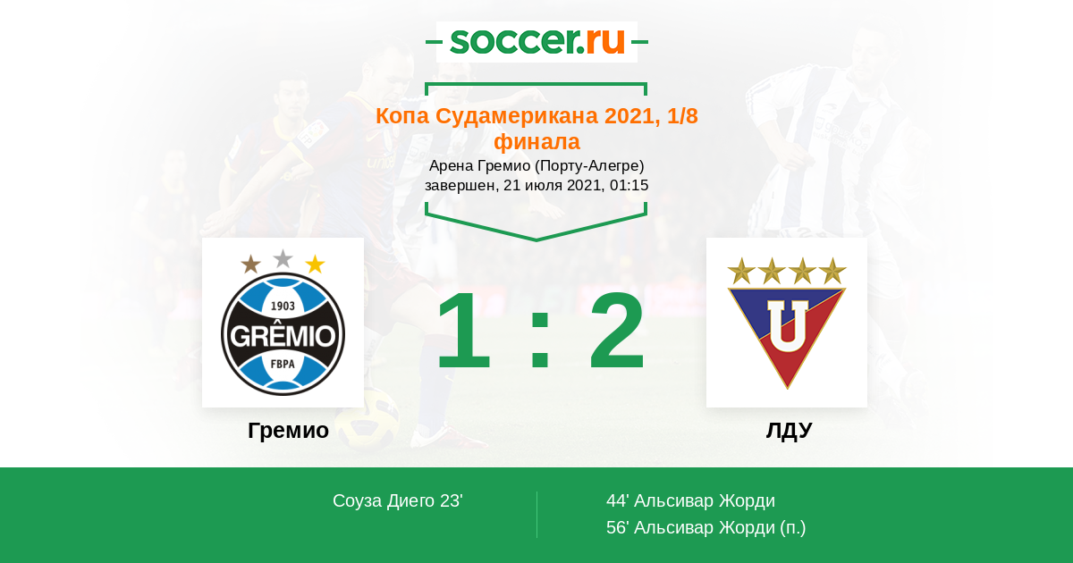 Протокол матча Гремио против ЛДУ