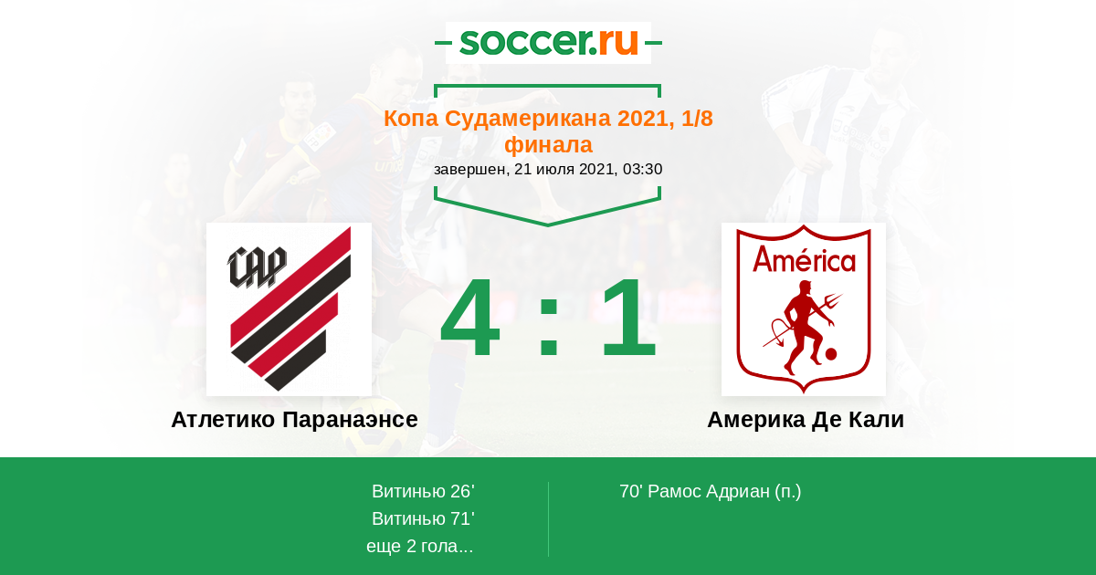 Протокол матча Атлетико Паранаэнсе против Америка Де Кали