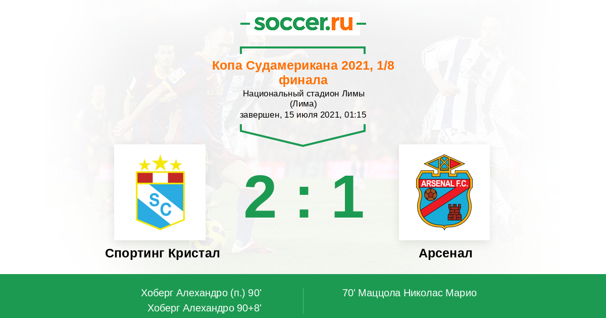 Протокол матча Спортинг Кристал против Арсенал