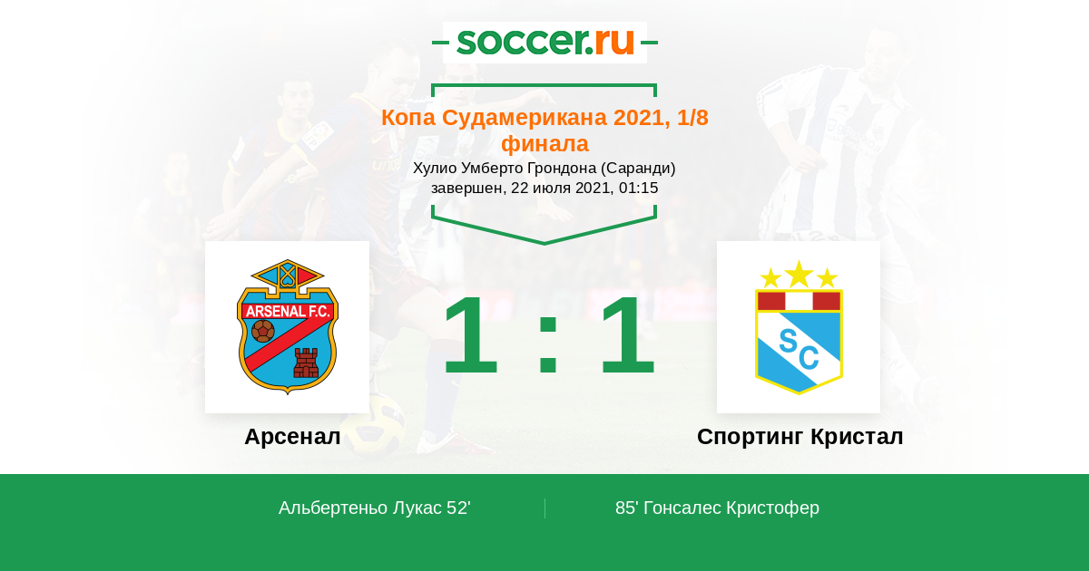 52' (1:0) Альбертеньо Лукас (9) (Кастро Федерико (11))