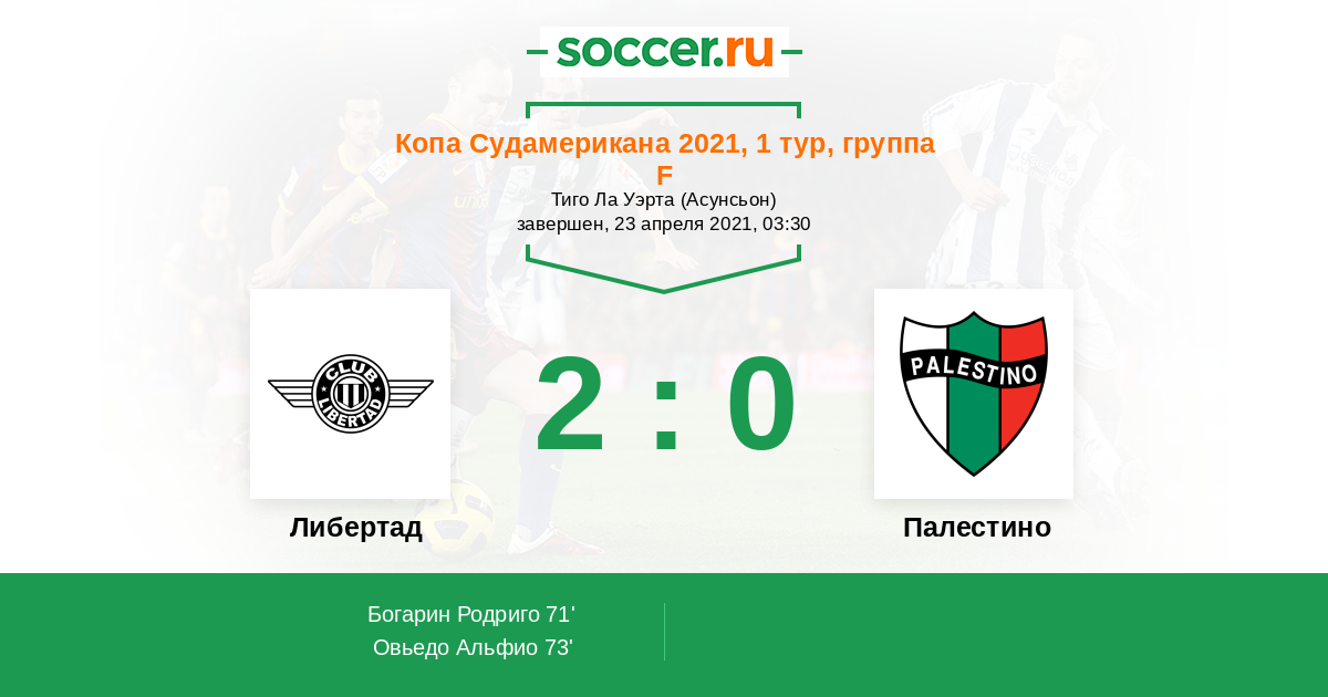 Протокол матча Либертад против Палестино