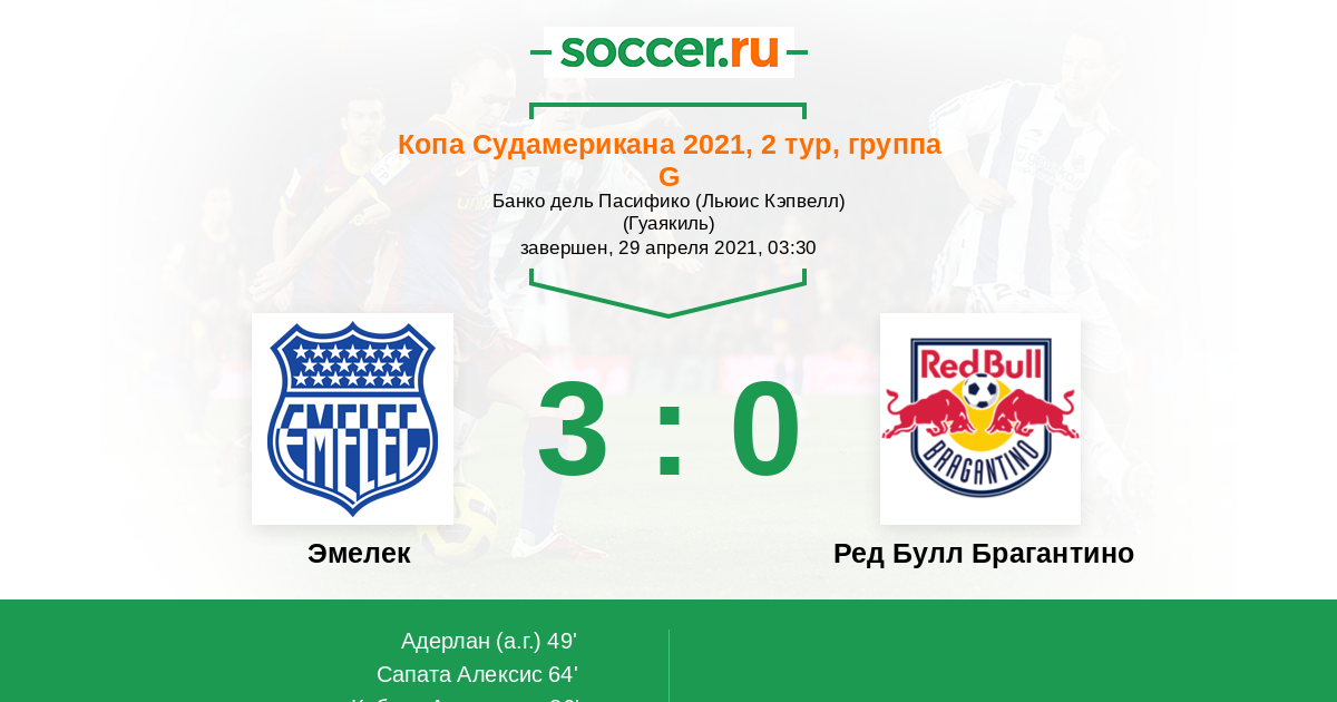 Протокол матча Эмелек против Ред Булл Брагантино