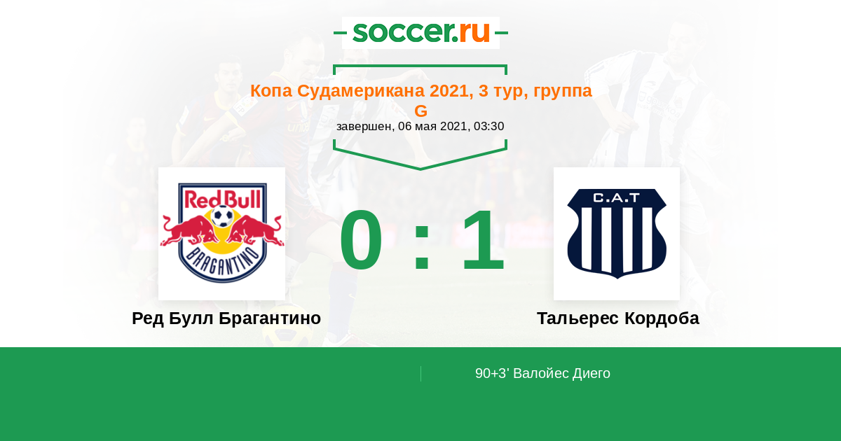 Протокол матча Ред Булл Брагантино против Тальерес Кордоба