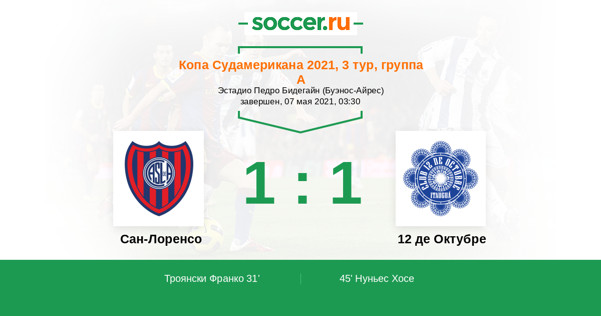 Протокол матча Сан-Лоренсо против 12 де Октубре