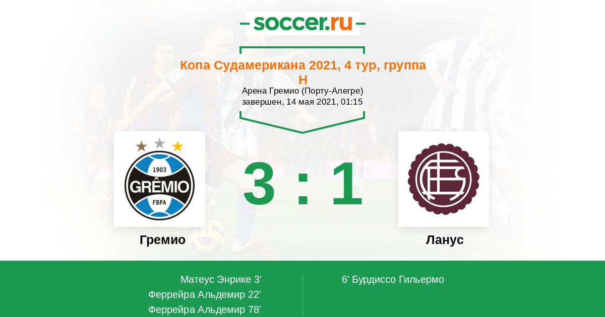 3' (1:0) Матеус Энрике (7) (Феррейра Альдемир (11))