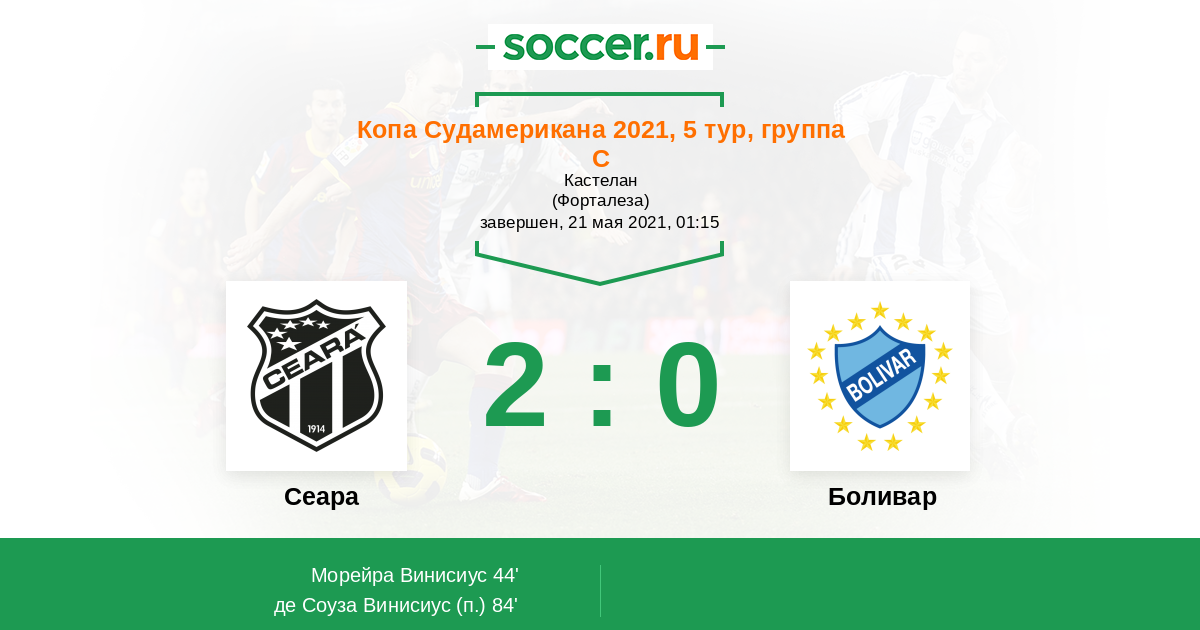 Протокол матча Сеара против Боливар