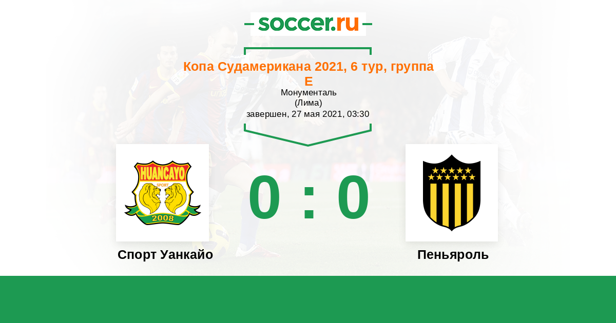 Протокол матча Спорт Уанкайо против Пеньяроль
