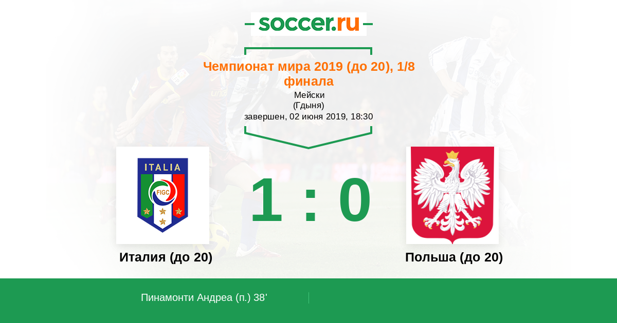 Протокол матча Италия (до 20) против Польша (до 20)