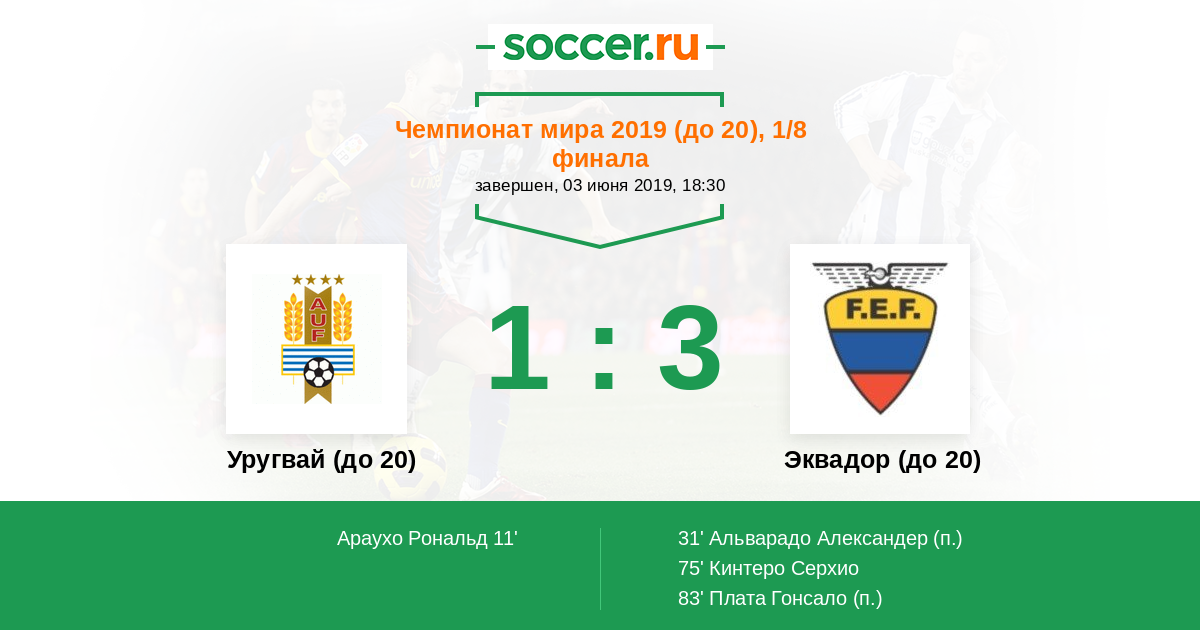 Протокол матча Уругвай (до 20) против Эквадор (до 20)
