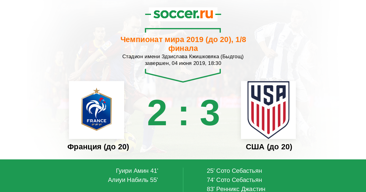 Протокол матча Франция (до 20) против США (до 20)