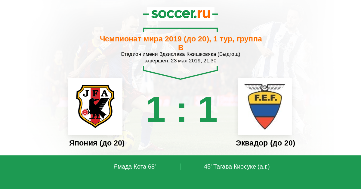 Протокол матча Япония (до 20) против Эквадор (до 20)