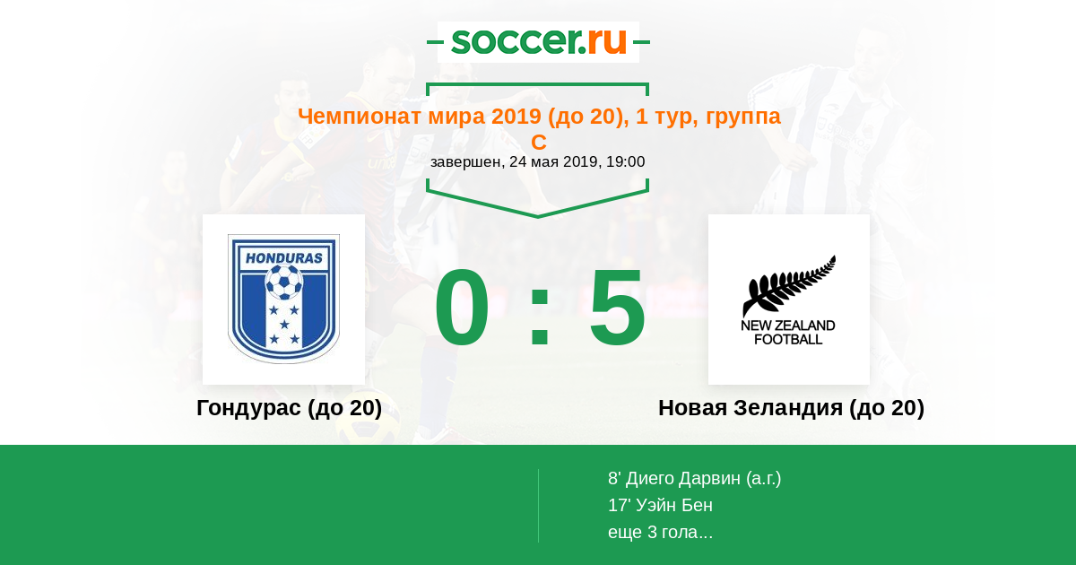 Протокол матча Гондурас (до 20) против Новая Зеландия (до 20)