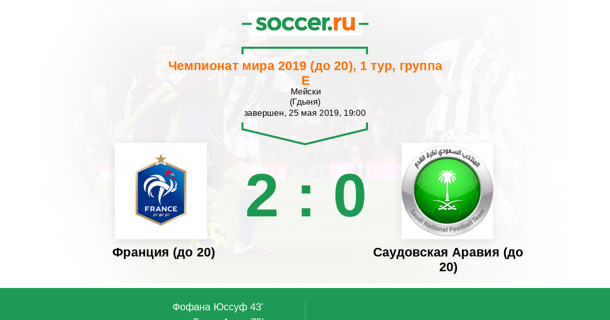 Протокол матча Франция (до 20) против Саудовская Аравия (до 20)