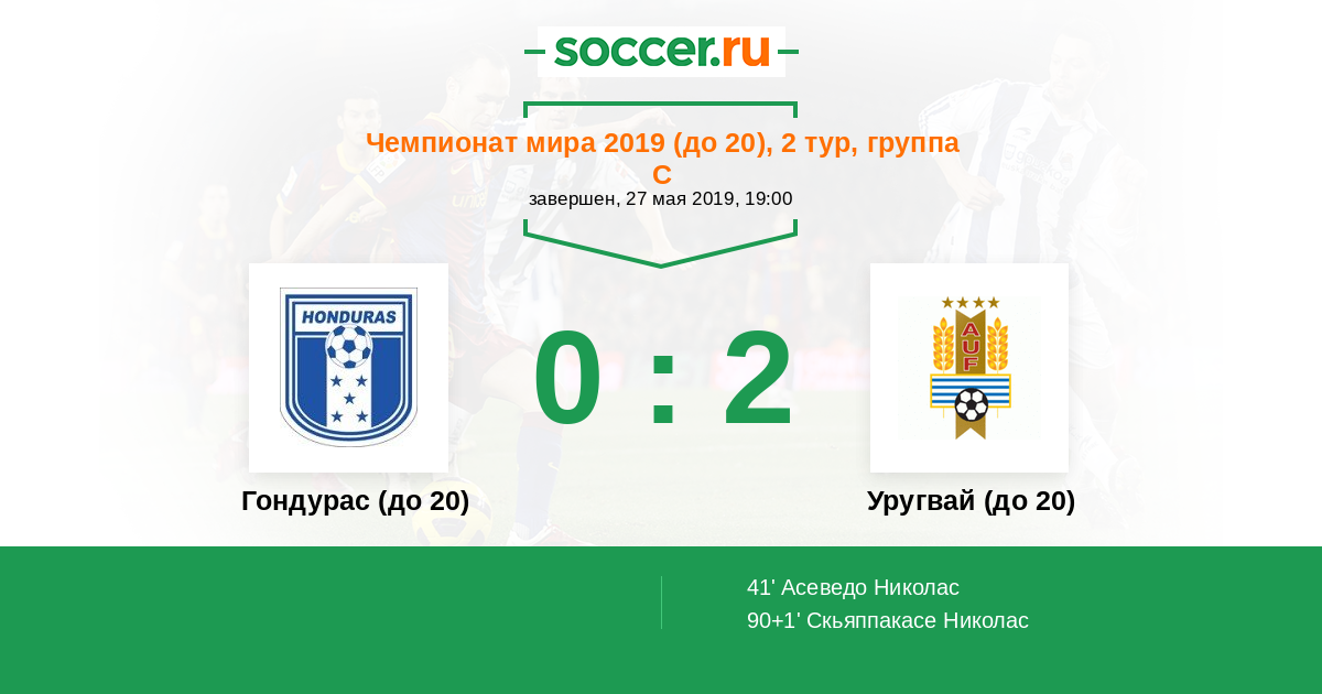 Протокол матча Гондурас (до 20) против Уругвай (до 20)