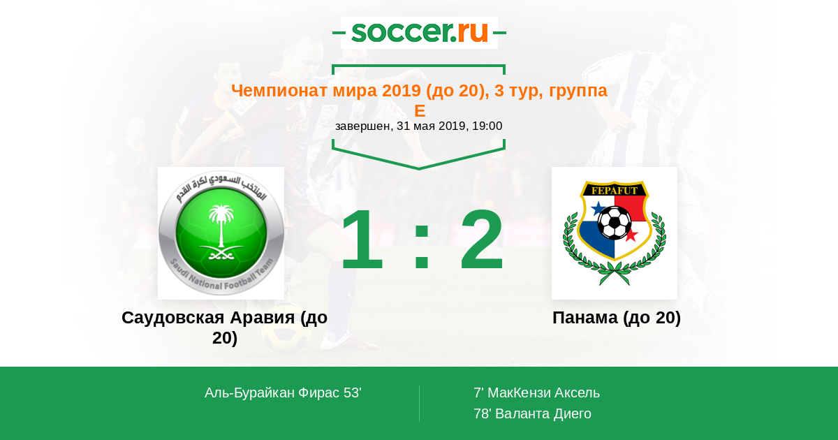 Протокол матча Саудовская Аравия (до 20) против Панама (до 20)