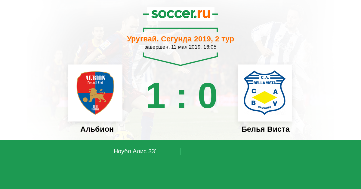 Протокол матча Альбион против Белья Виста