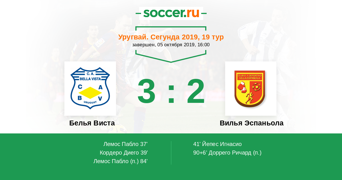Протокол матча Белья Виста против Вилья Эспаньола