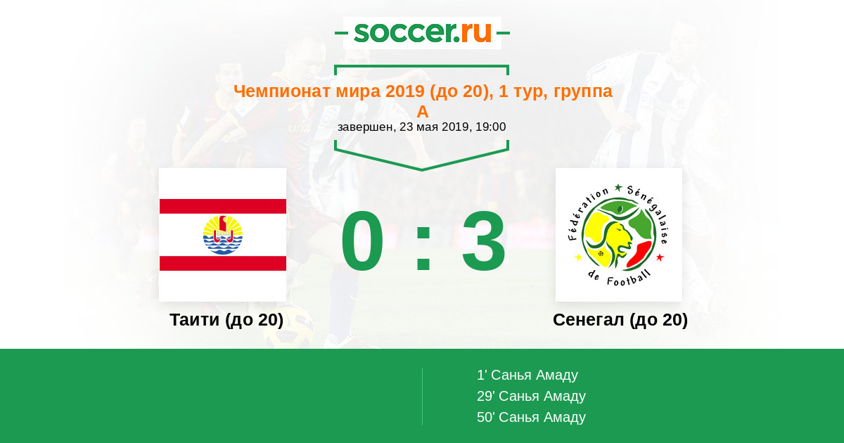 Протокол матча Таити (до 20) против Сенегал (до 20)