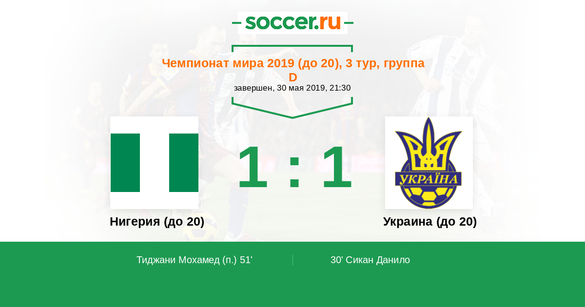 Протокол матча Нигерия (до 20) против Украина (до 20)
