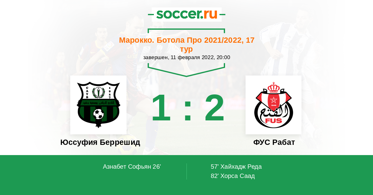 Протокол матча Юссуфия Беррешид против ФУС Рабат