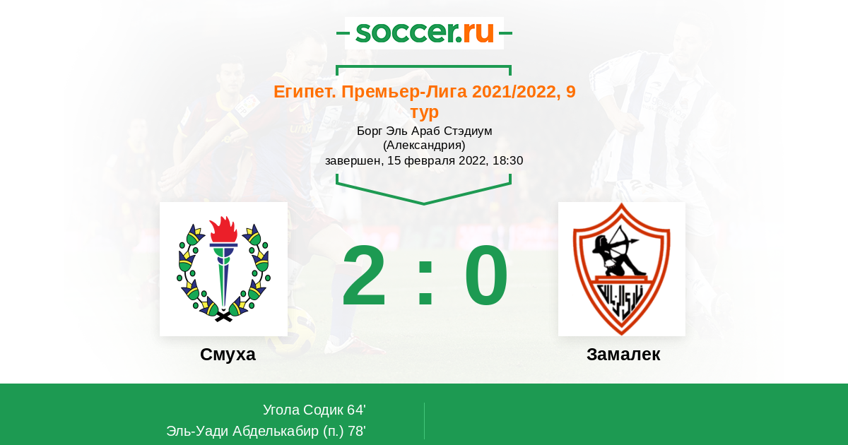 Протокол матча Смуха против Замалек
