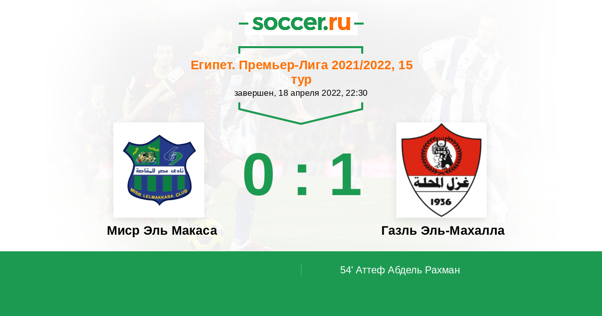 Протокол матча Миср Эль Макаса против Газль Эль-Махалла