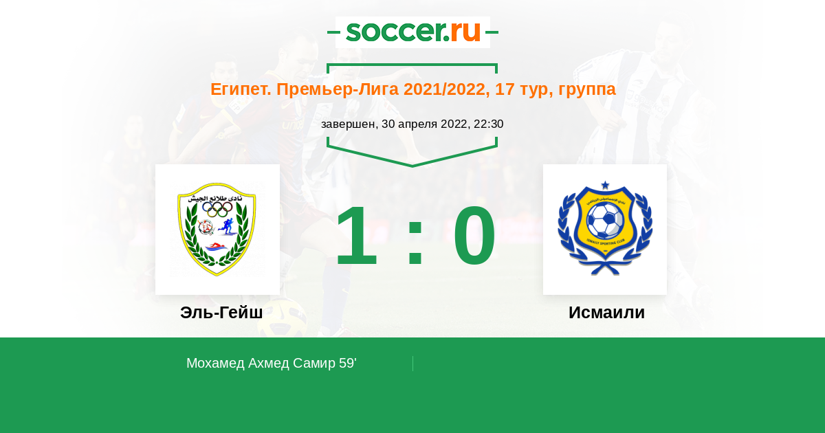 59' (1:0) Мохамед Ахмед Самир (19) (Амр Эль Сиси (7))