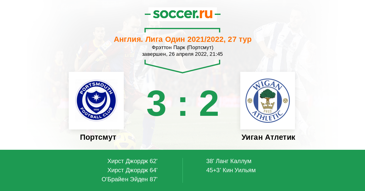 Протокол матча Портсмут против Уиган Атлетик