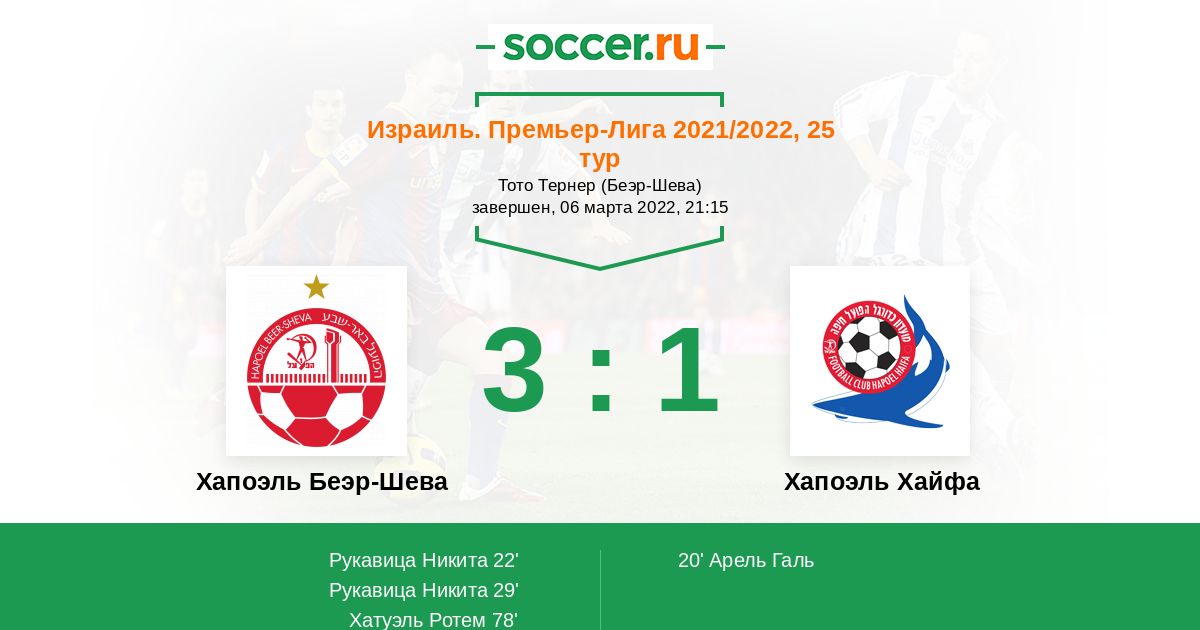 Протокол матча Хапоэль Беэр-Шева против Хапоэль Хайфа
