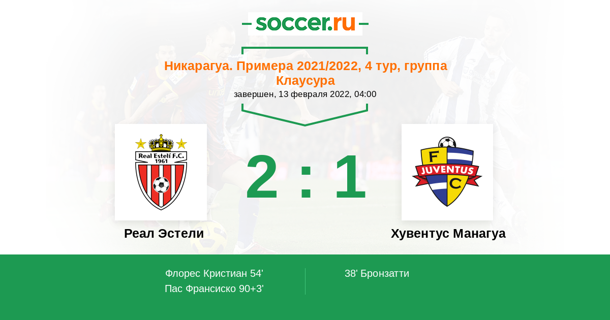 Протокол матча Реал Эстели против Хувентус Манагуа