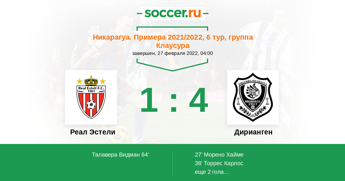 Протокол матча Реал Эстели против Дирианген