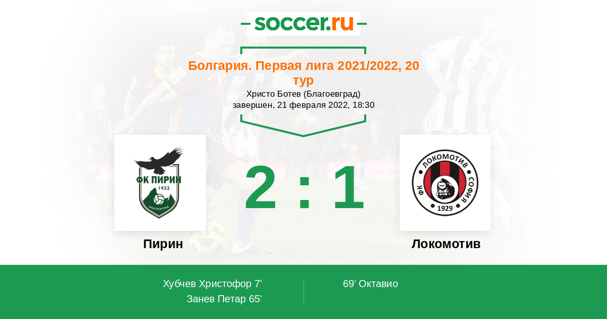 Протокол матча Пирин против Локомотив