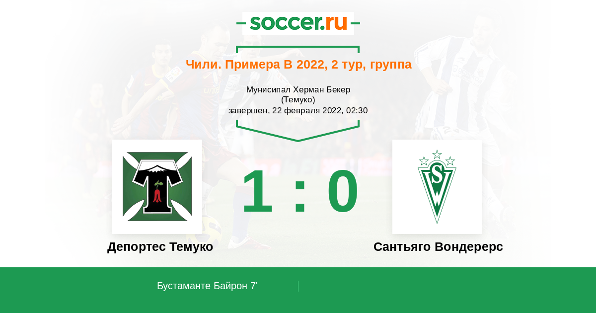 Протокол матча Депортес Темуко против Сантьяго Вондерерс