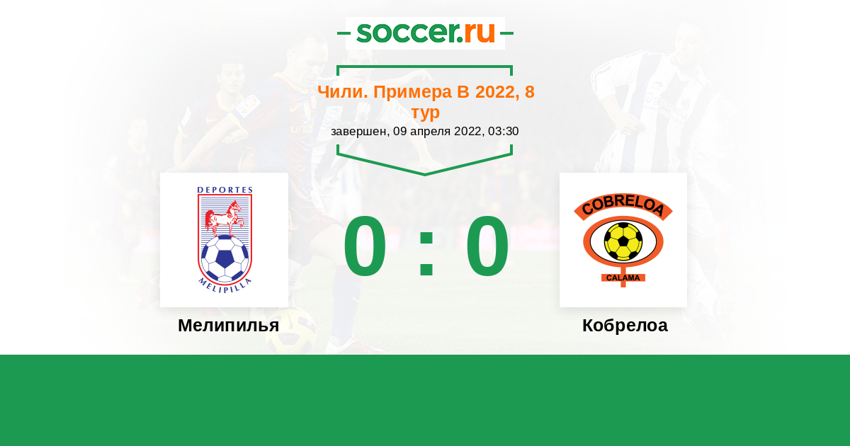 Протокол матча Мелипилья против Кобрелоа