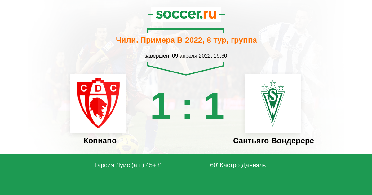 Протокол матча Копиапо против Сантьяго Вондерерс
