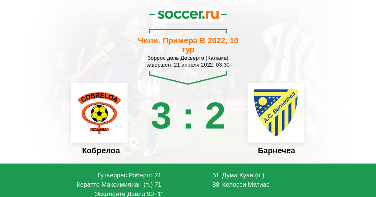 Протокол матча Кобрелоа против Барнечеа