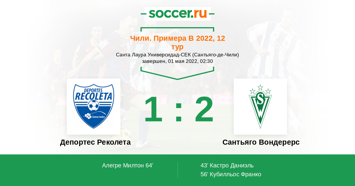 Протокол матча Депортес Реколета против Сантьяго Вондерерс