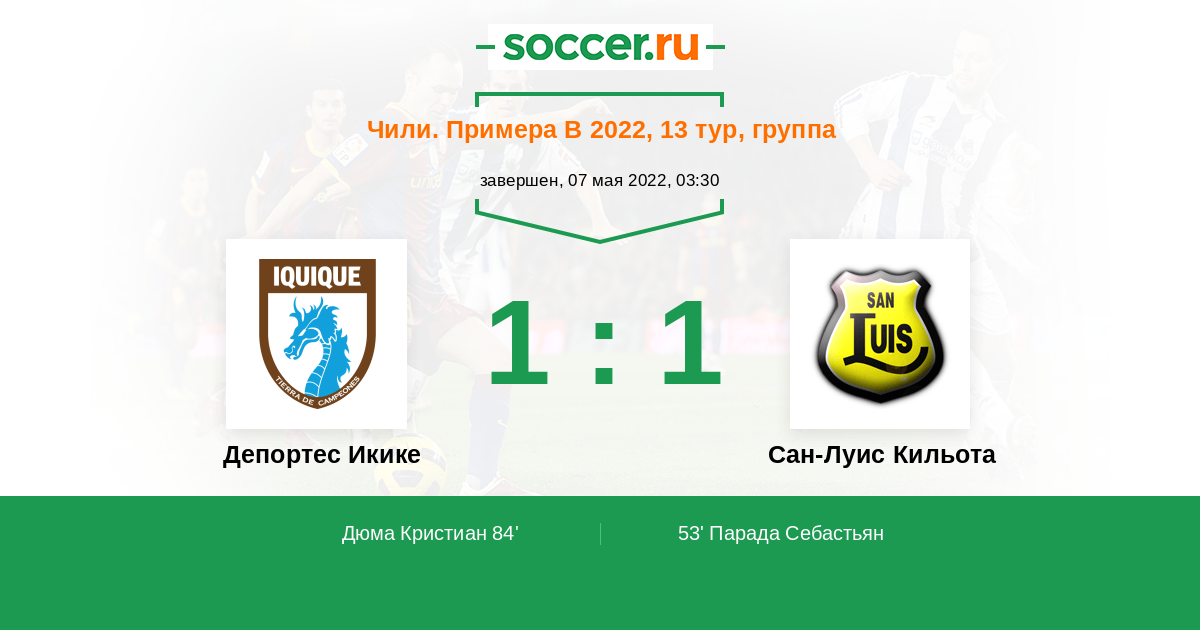 Протокол матча Депортес Икике против Сан-Луис Кильота