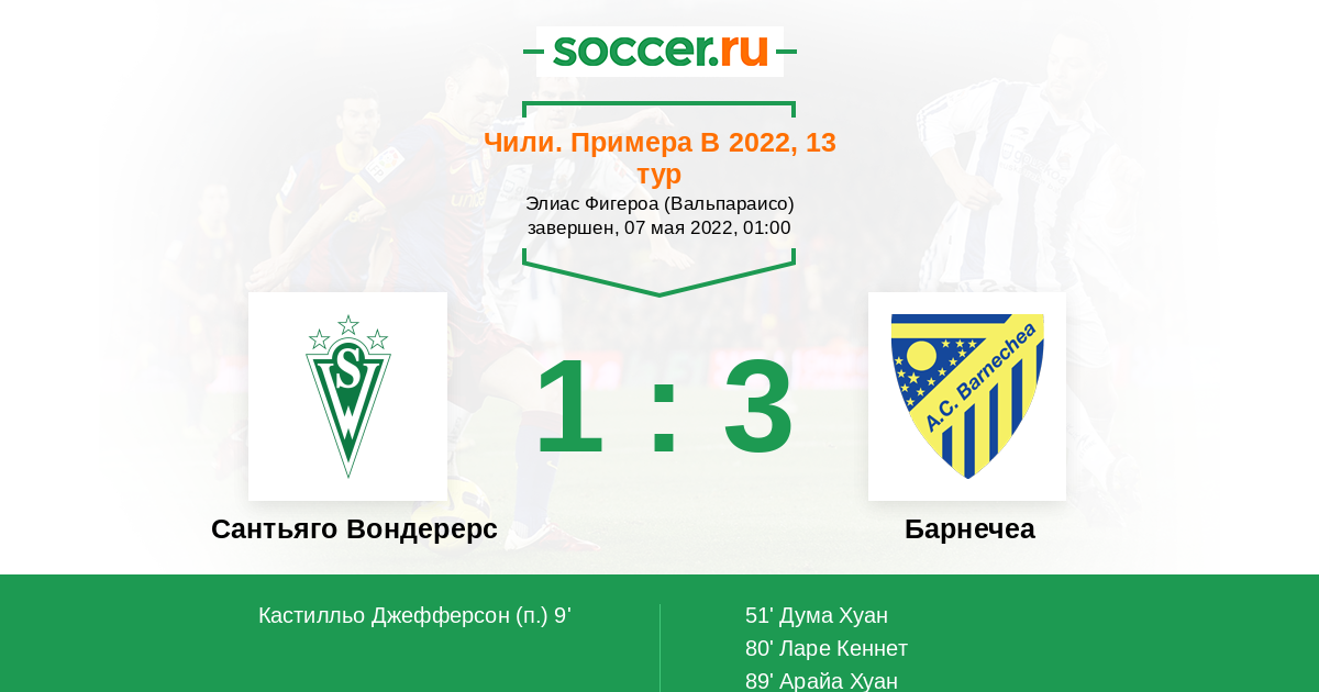 Протокол матча Сантьяго Вондерерс против Барнечеа