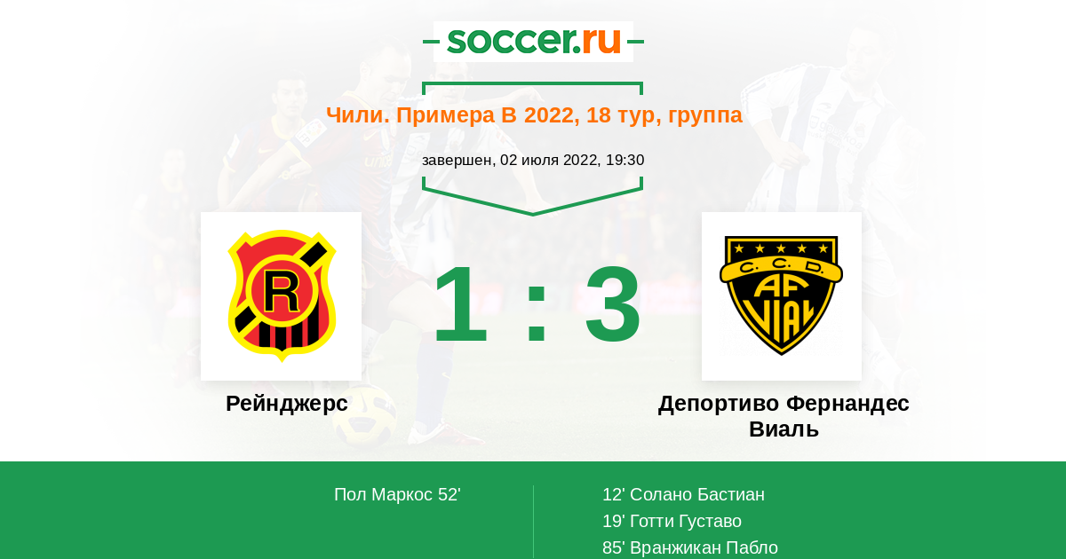 Протокол матча Рейнджерс против Депортиво Фернандес Виаль