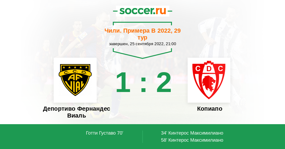 Протокол матча Депортиво Фернандес Виаль против Копиапо