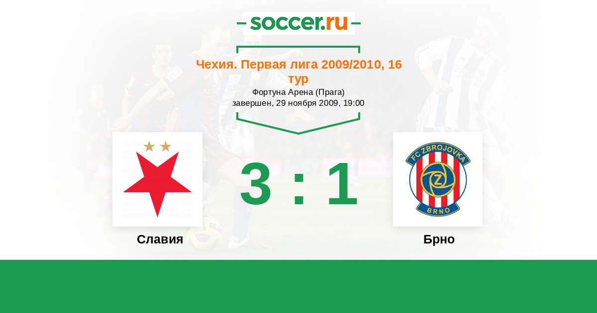 Чехия. Первая Лига 02.08.2009 Брно Логотип футбольный клуб Брно 2:0 Логотип футбольный клуб Славия (Прага) Славия